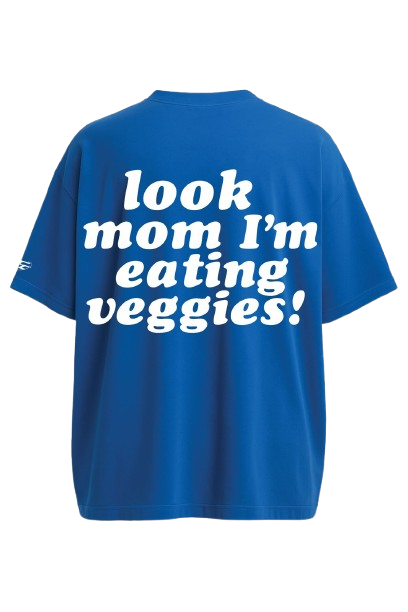 Your mom was right about vegetables. She just didn’t say it had to be boring. Playful white typography meets royal blue cotton in an oversized tee that’s equal parts humor and confidence. 240 GSM French terry fabric keeps you comfortable from coffee to midnight. Wear it when you’re proving everyone wrong—including yourself.