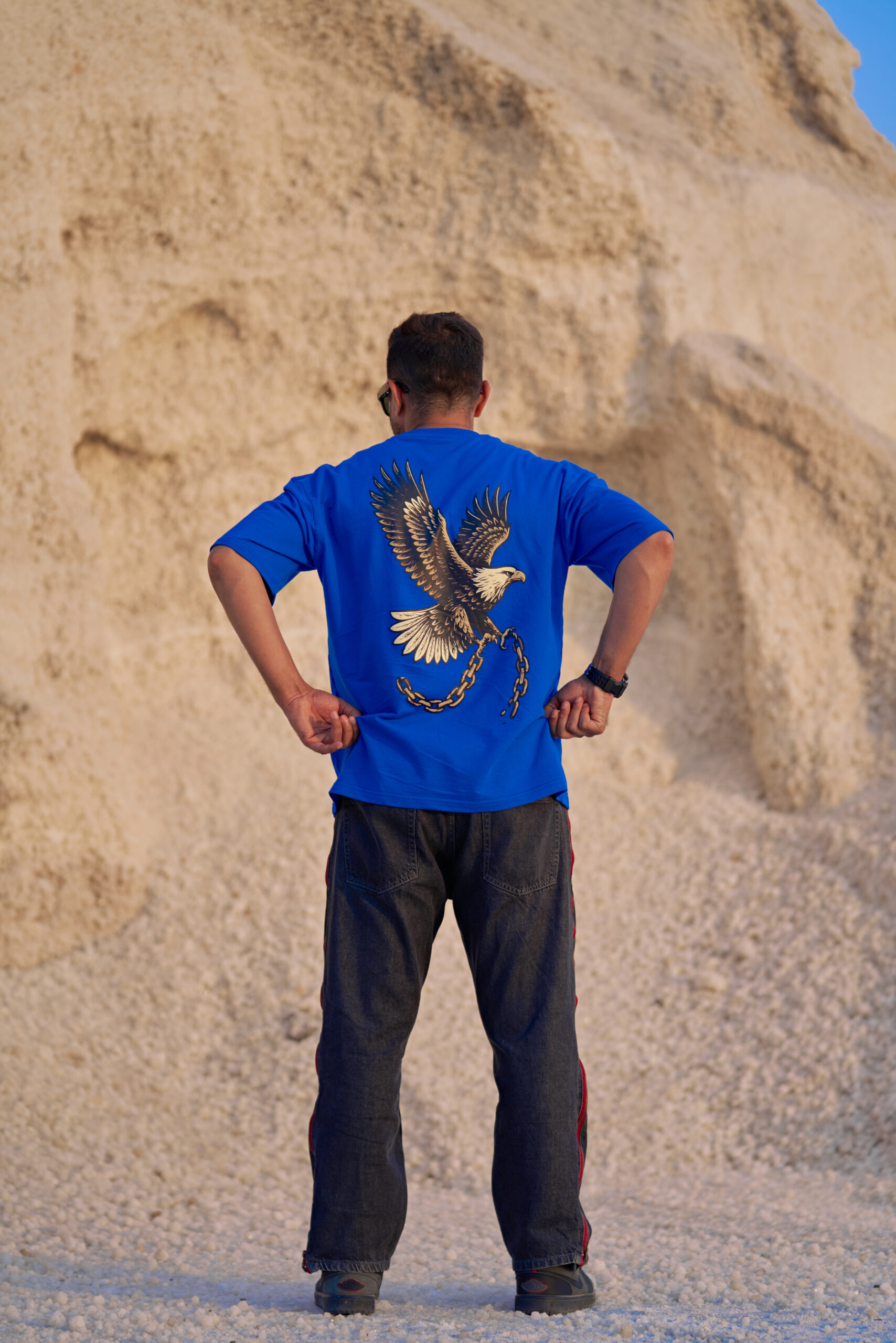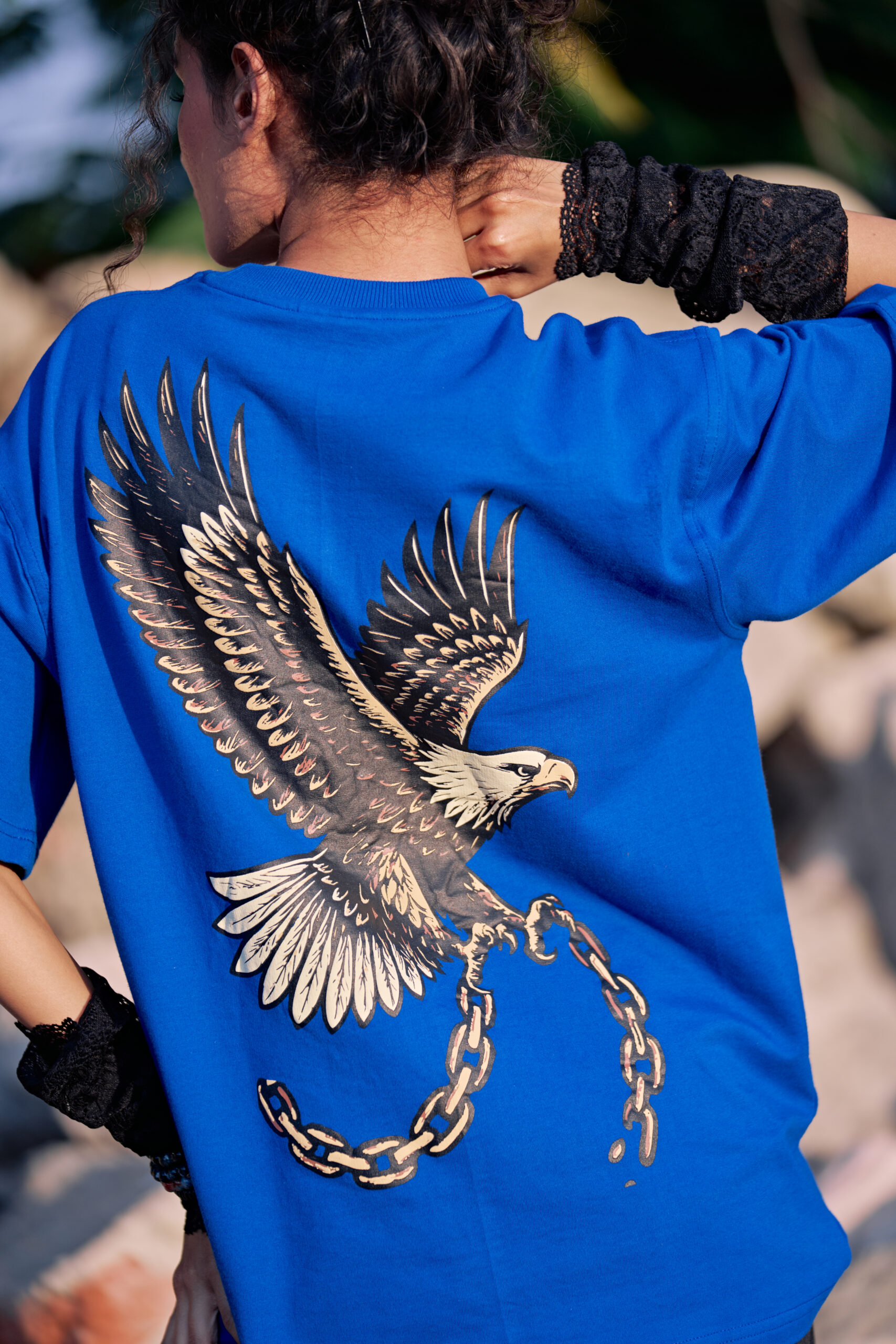 An eagle mid-flight, shattering chains that held it down. This design isn’t about struggle—it’s about liberation. Premium 240 GSM French terry cotton feels like luxury but wears like armor. Royal blue base, bold back graphic, oversized cut that moves with you. For the ones who refuse to stay grounded. Design is Puff Print